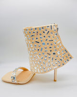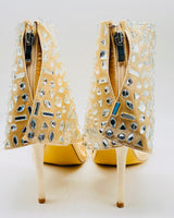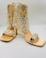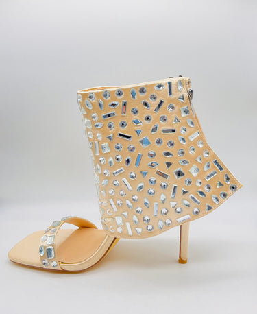 these boots are a night-out treasure that ensures you’ll be the shimmering focal point of any room. Crafted with precision, each gem catches the light, casting an array of reflections that dance with your every step. The sleek backdrop and delicate stiletto heel sculpt a silhouette of unmatched elegance and bold sophistication.