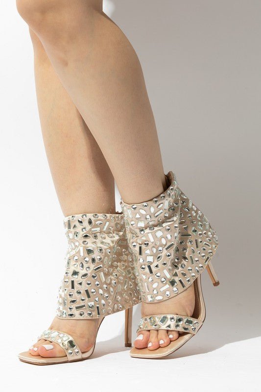 Elevate your ensemble to a realm of glamour with these enchanting heels.