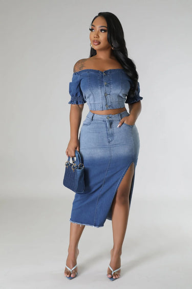 Lorena Baby Blue Skirt Set with V-Neck Top – Women's Two Piece Skirt Set