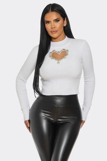 Elevate your look with the White Heart Cutout Turtleneck Top – Lovely Fit. This stunning long sleeve top features premium fabric with a flattering fit and a classic turtleneck, strategic cutout details — designed to keep you stylish and confident from day to night.