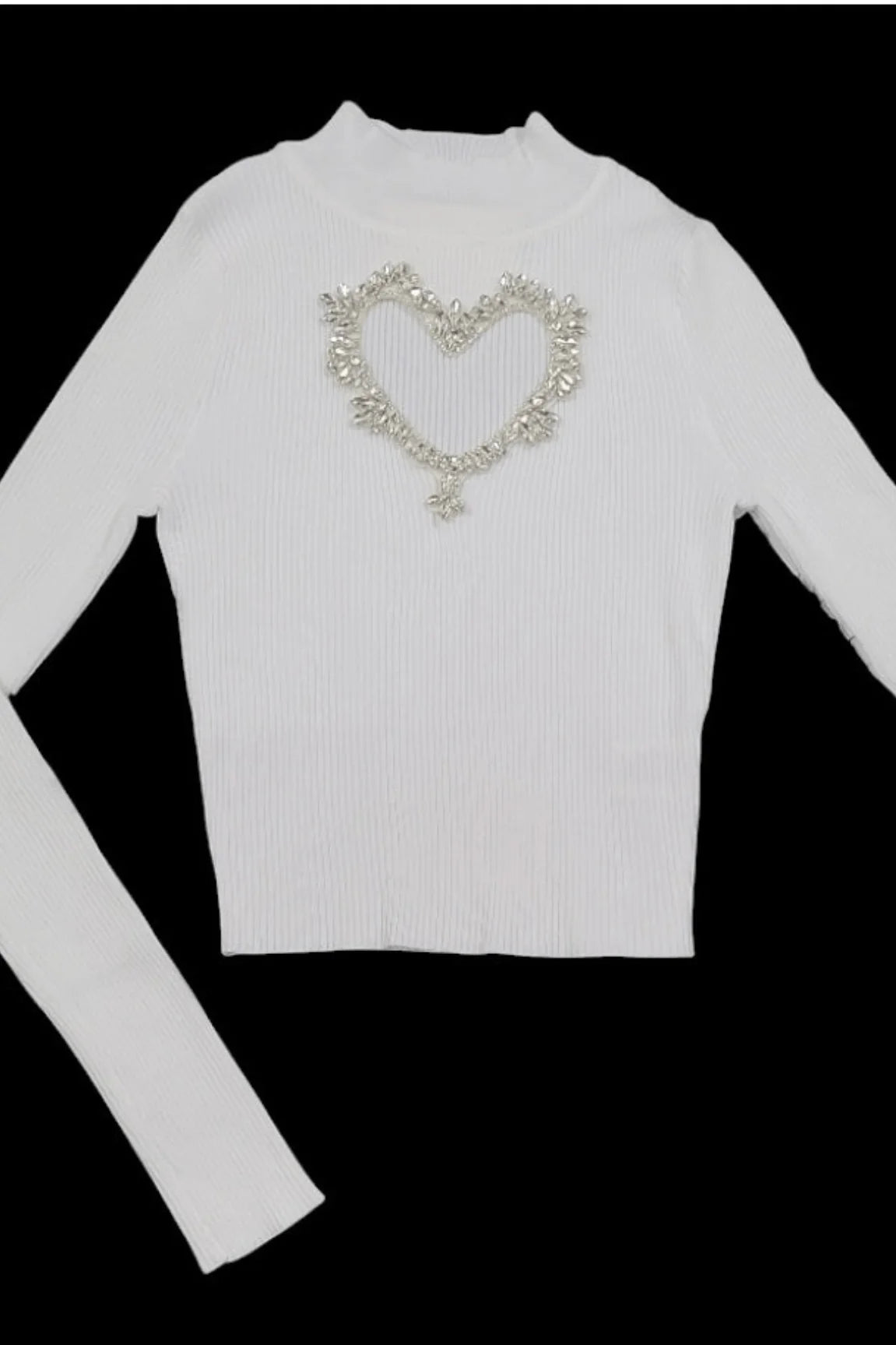 White Heart Cutout Turtleneck Top – Lovely Fit