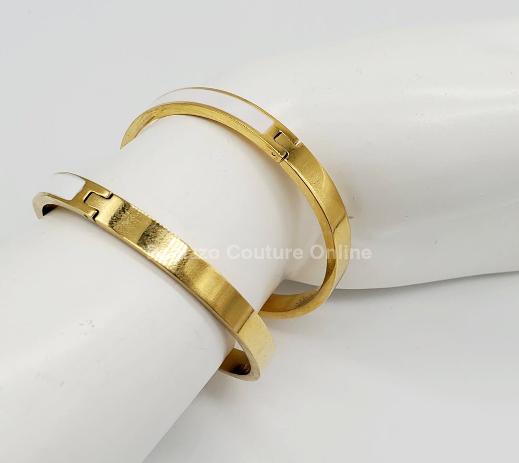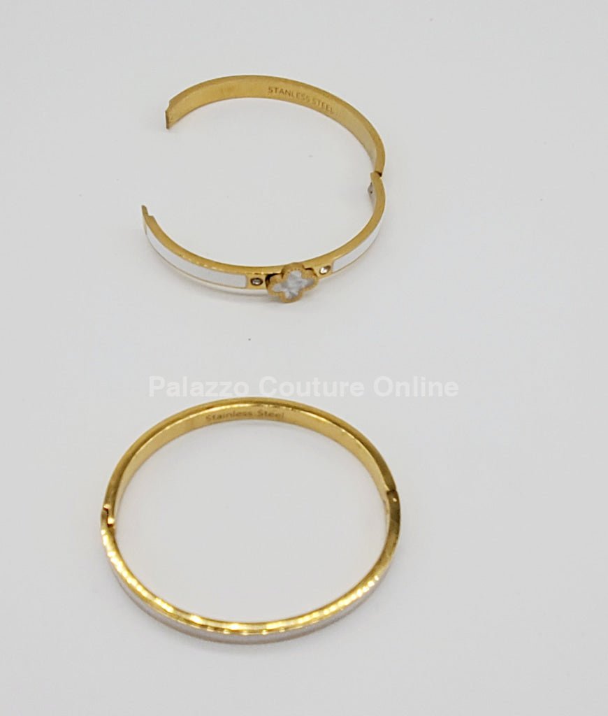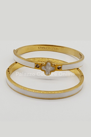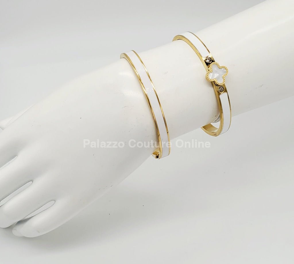 Lucky Clover Narrow Enamel Hinged Bangle Clover (White )