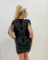 Rhinestone Fringe Sleeve Bodycon Mini Dress (Black)