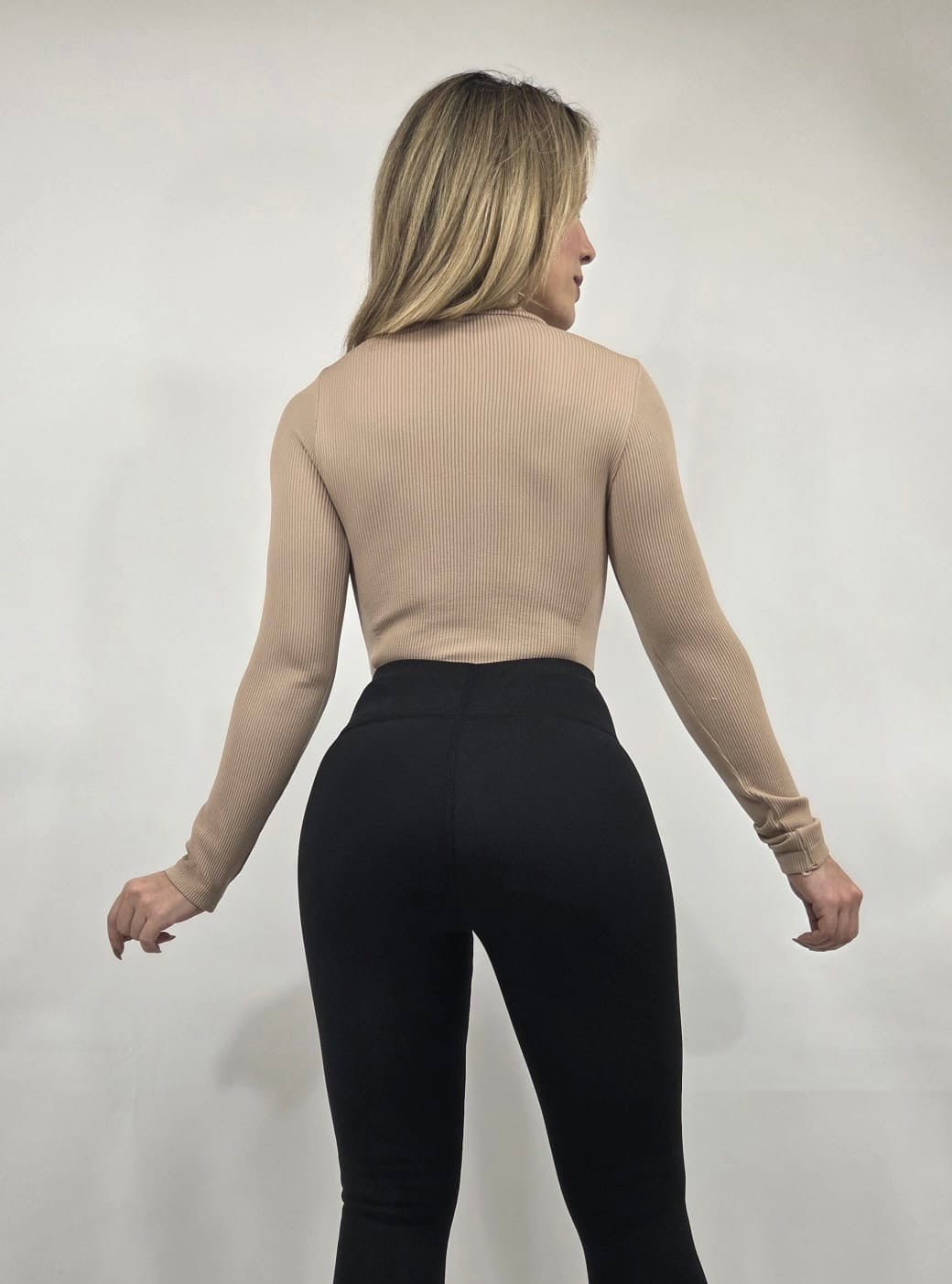 Sleek Ribbed High-Neck Bodysuit (M. Nude)