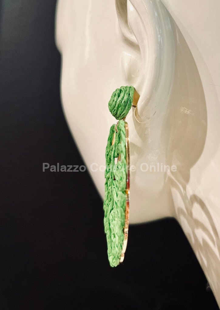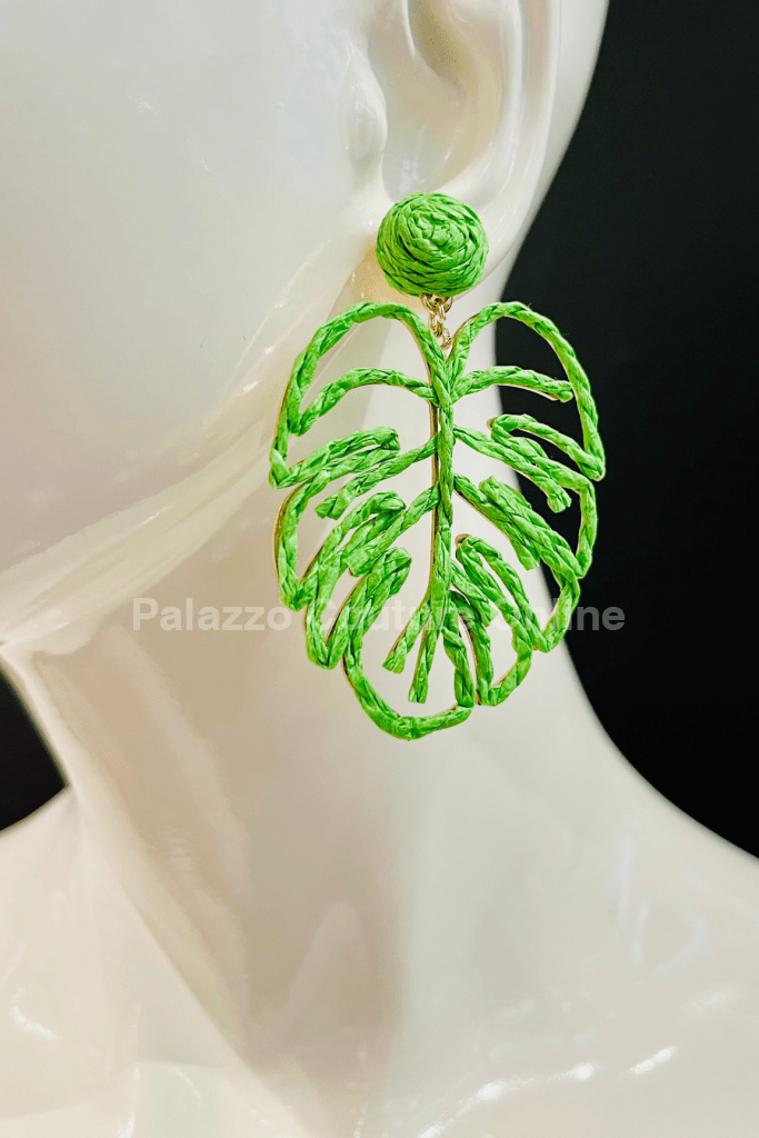 These earring leaves in vibrant green are the perfect accessory to add a touch of nature-inspired beauty to your look. The intricate leaf design is eye-catching and unique, making it a standout piece that will surely turn heads. Whether you're dressing up for a special occasion or simply want to add a pop of color to your everyday outfits, these earrings are a must-have. green statement earrings
