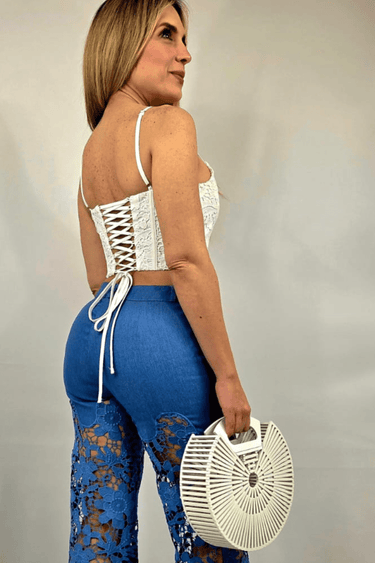 • Turn heads in the Lace Elegance Two-Piece Set, a stunning blend of romance and sophistication. The structured corset top features intricate lace detailing and a lace-up back for the perfect adjustable fit. Paired with high-waisted pants adorned with floral lace cutouts, this set offers a bold yet feminine aesthetic. Designed for both style and comfort, it’s the perfect choice for making a statement at any event