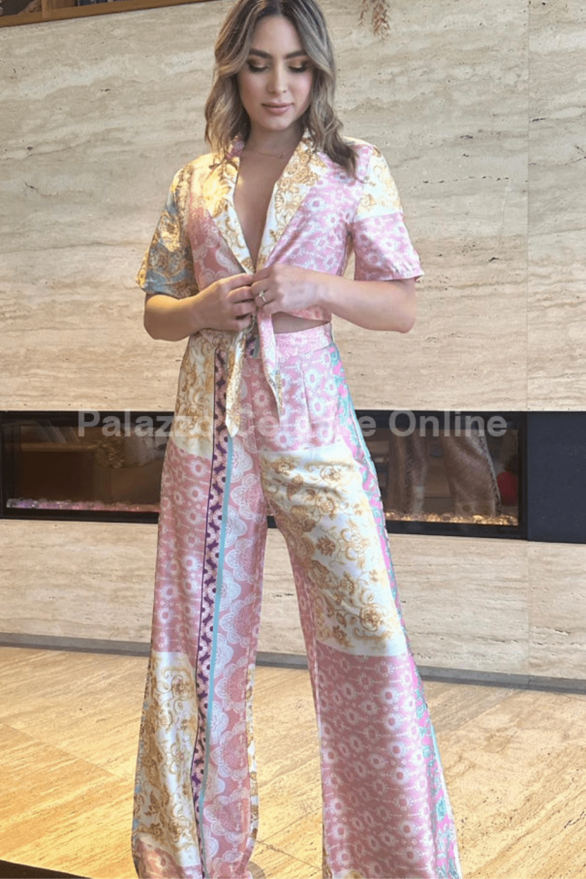 Paris Fabulous Wide Leg Pants Set (Pink Multi)