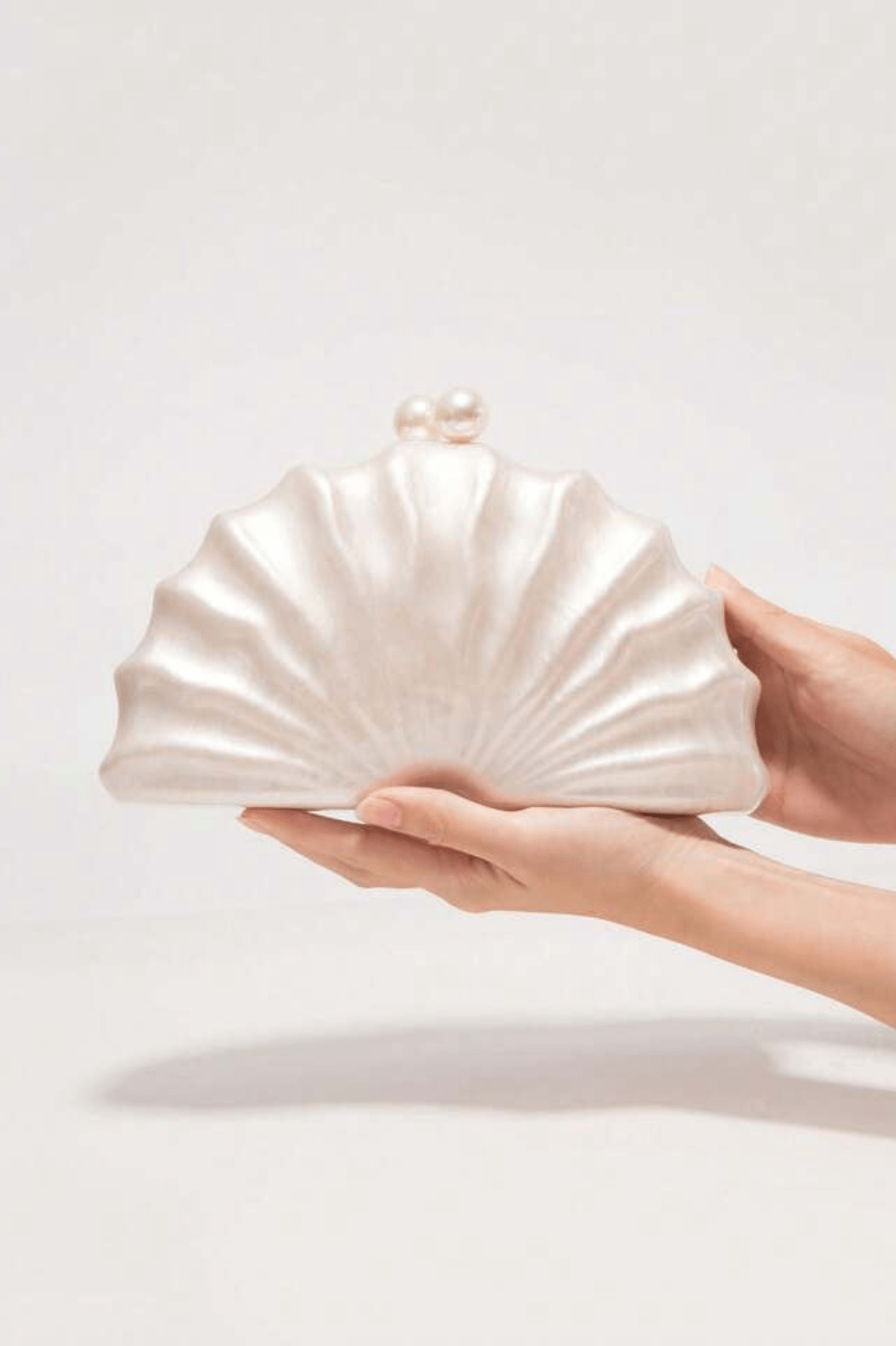 Description: Elevate your evening look with the Pearl Shell Evening Clutch, a statement accessory inspired by the beauty of the ocean. Designed in a sculpted shell silhouette with a lustrous finish, this clutch exudes elegance and sophistication. The pearl-adorned clasp adds a touch of luxury, making it perfect for special occasions, weddings, or glamorous nights out. Compact yet stylish, it’s the ultimate piece to complete your chic ensemble.
