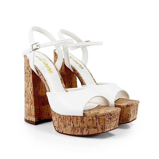 These platform wedges feature a stylish open-toe design and adjustable lace-up ankle closure, offering both a secure fit and a touch of retro flair. The cork heel contrasts beautifully with the smooth White upper, making them easy to pair with dresses, skirts, or cropped pants for a casual yet elevated look.