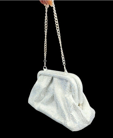 Introducing the Rhinestone Rain Clutch Silver, your ultimate evening essential crafted to steal the spotlight. Adorned with glistening rhinestones over a soft metallic silver base, this clutch brings effortless glamour and refined sparkle to any outfit. Whether you're heading to a gala, wedding, or night out, this structured silhouette complements both minimal and extravagant looks with ease.