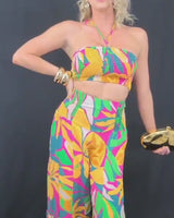 Tropical Bliss Printed Linen Two Piece Pant Set