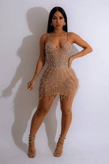 Hollywood Glamour Sequin Mini Dress (Nude)