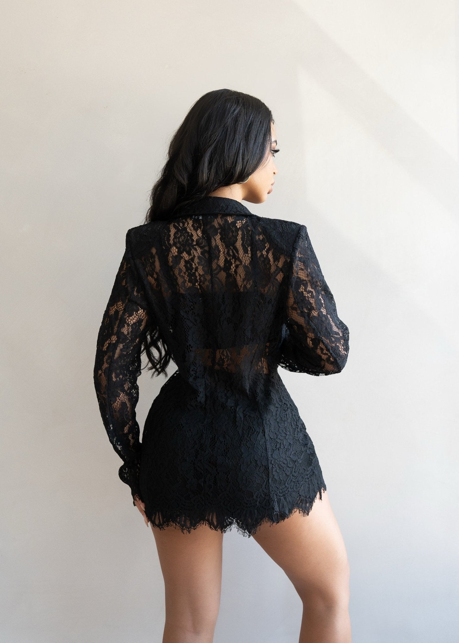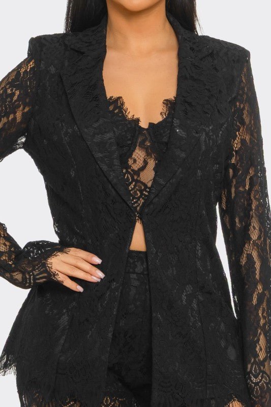 The tailored blazer adds sophistication and power, while the intricate lace detailing keeps the look feminine, bold, and undeniably glamorous. Perfect for birthdays, date nights, special events, or an elevated girls’ night out.