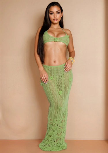 Island Bloom Knit Skirt Set- Green – Women's Two Piece Skirt Set