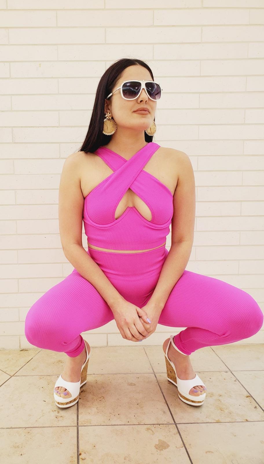 Summer Breeze Top & Leggings Sculpting Set (Fuchsia)