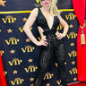 This hot velvet mesh jumpsuit stretches and fits true to size. Model is wearing a small.
